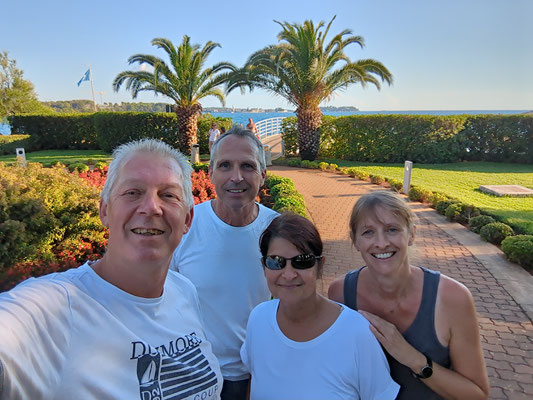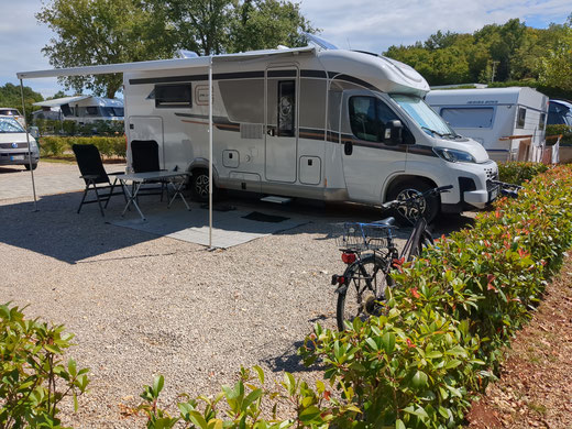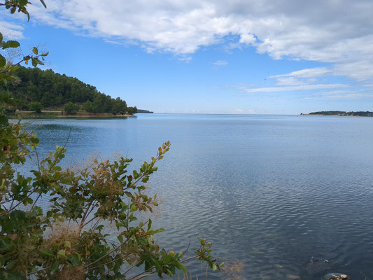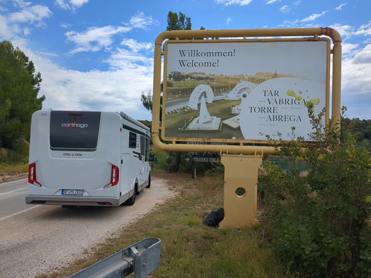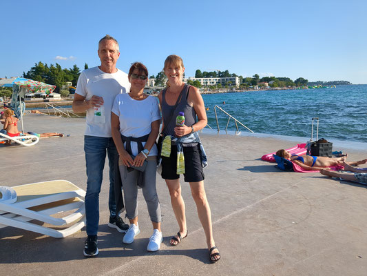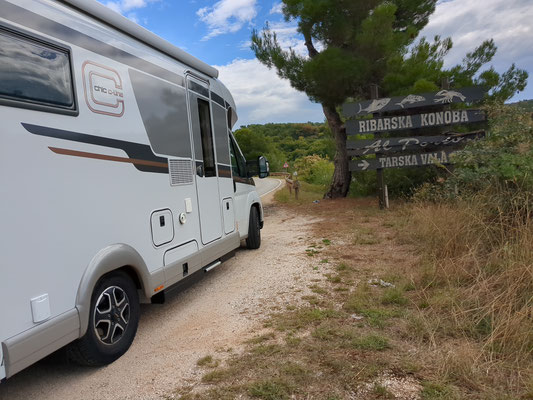 Wir steuern unseren Capingplatz Polidor Camping Resort für die nächsten drei Nächte an. Der Platz liegt sehr ruhig mitten in einem jahrhundertealten Eichenwald, in der Nähe von Poreč. Carlo steht wie eine Eins auf seinem neuen Platz und wir rollen die Markise aus, holen Tisch und Stühle 'raus, trinken erst einmal einen Kaffee am Pool und essen eine Kleinigkeit. So fängt Entspannung an :-)